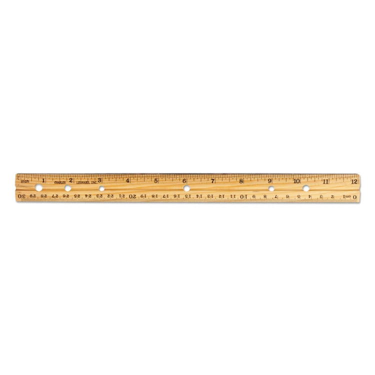Charles Leonard® Beveled Wood Ruler W/Single Metal Edge, 3-Hole Punched, Standard/Metric, 12″ Long, Natural, 36/Box