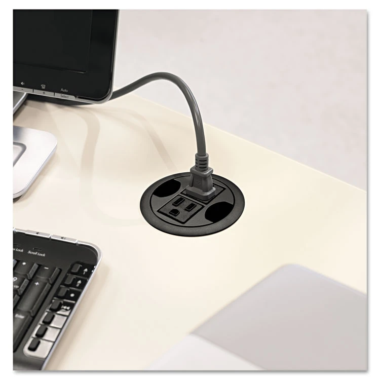 Power hub puts power access directly at your worksurface level. Provides two grounded AC outlets. Generous six-foot cord with three-prong plug provides a safe, secure connection. Fits three-inch grommet holes in most HON furniture lines.